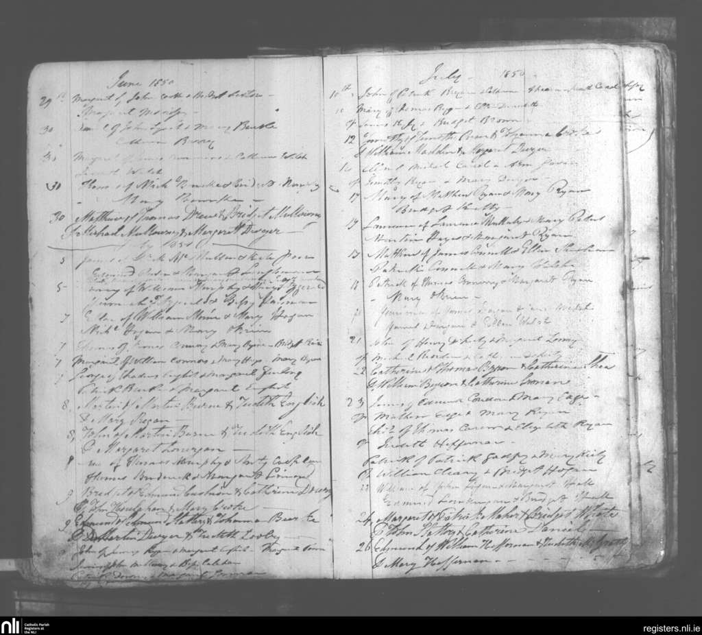 Tipperary; County of Tipperary; Diocese of Cashel and Emly. Baptisms, June 1850 to July 1850