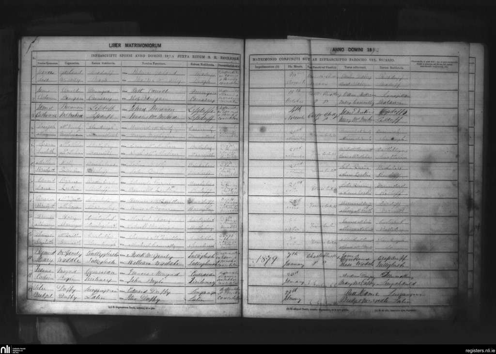 Aughnamullen East; County of Monaghan; Diocese of Clogher. Marriages, Aug. 1878 to Feb. 1879