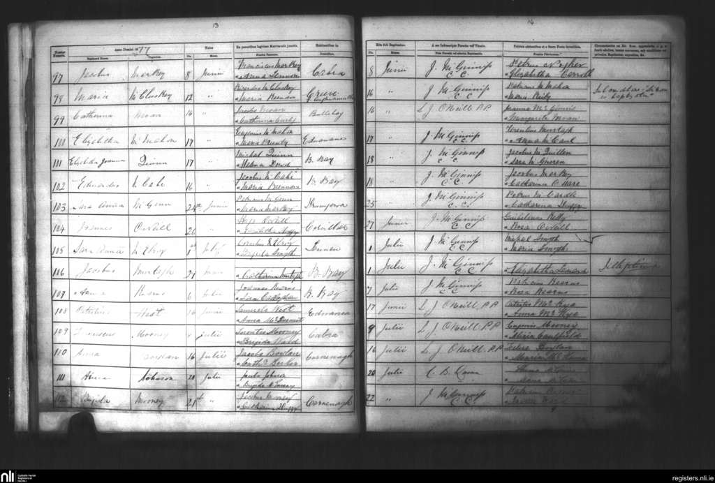 Tullycorbet; County of Monaghan; Diocese of Clogher. Baptisms, June 1877 to July 1877