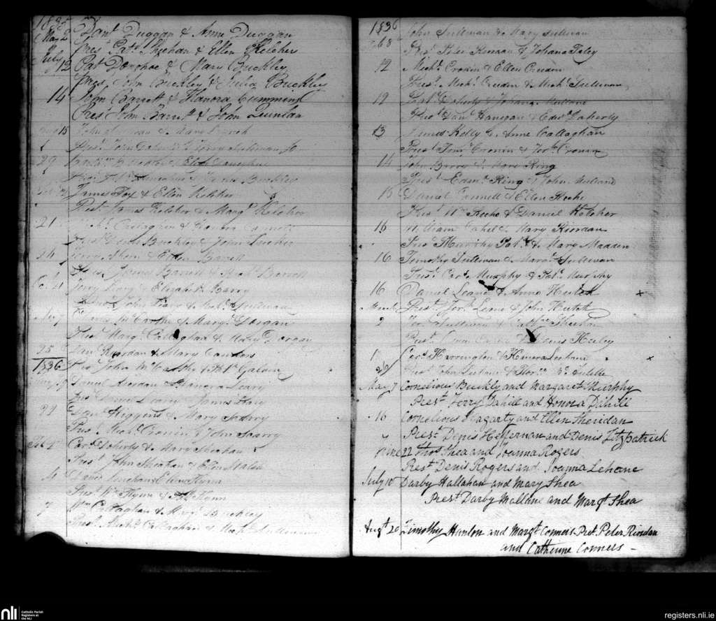 Castlemagner; County of Cork; Diocese of Cloyne. Marriages, May 1835 to Aug. 1836