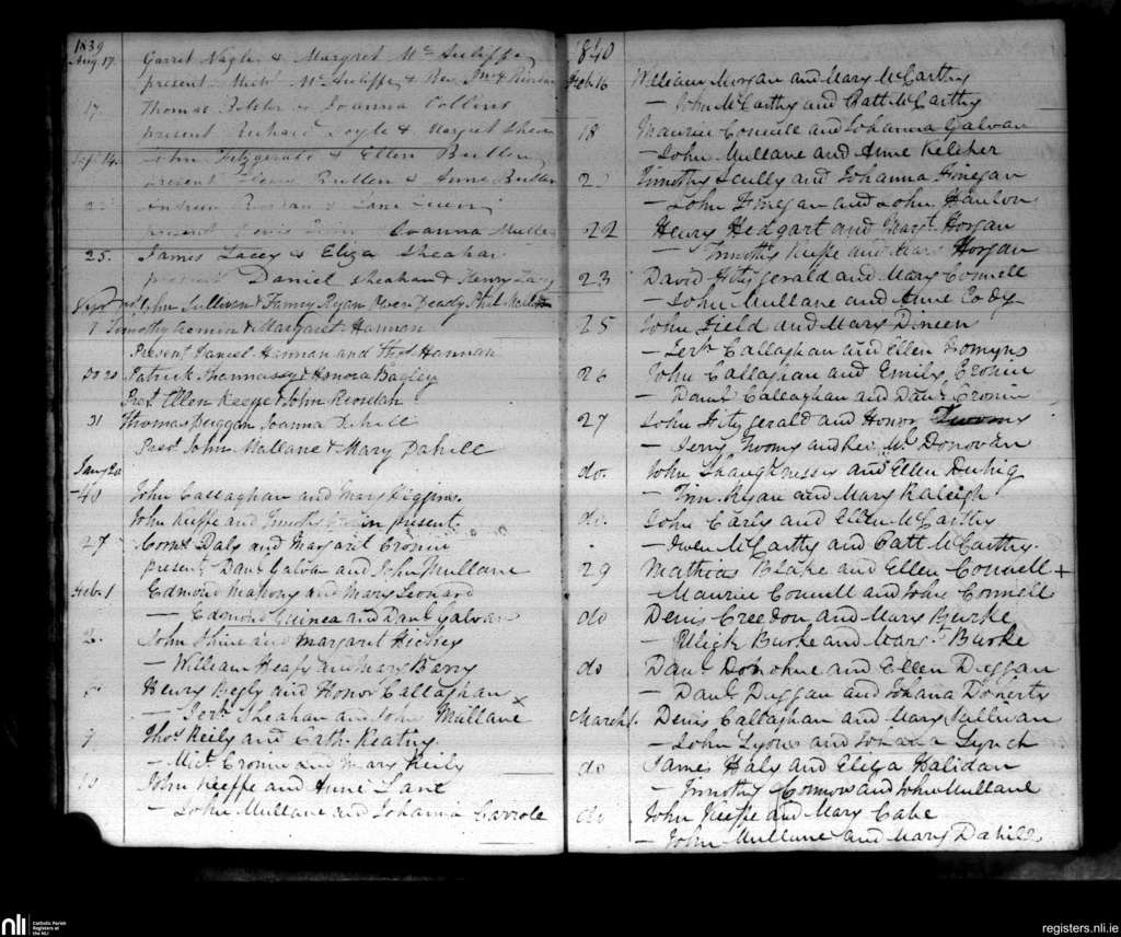 Castlemagner; County of Cork; Diocese of Cloyne. Marriages, Aug. 1839 to Mar. 1840