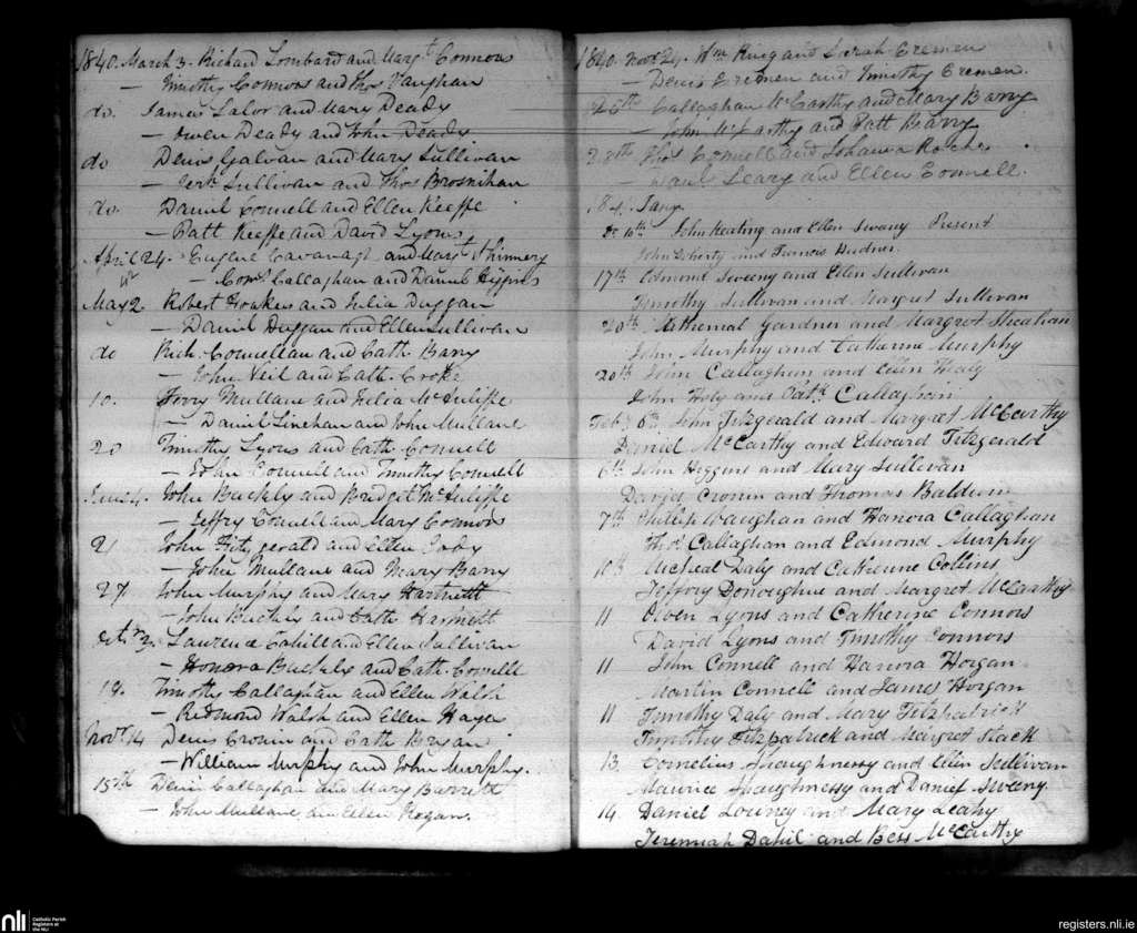 Castlemagner; County of Cork; Diocese of Cloyne. Marriages, Mar. 1840 to Feb. 1841