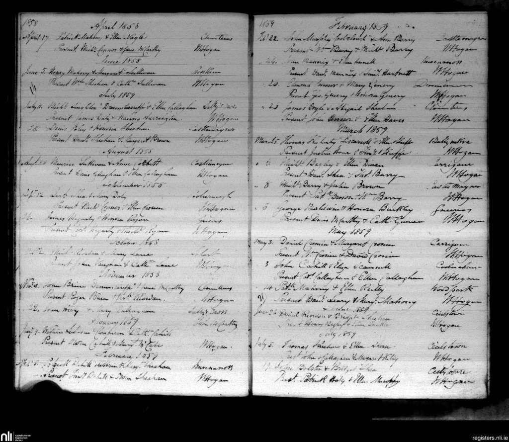 Castlemagner; County of Cork; Diocese of Cloyne. Marriages, Apr. 1858 to July 1859