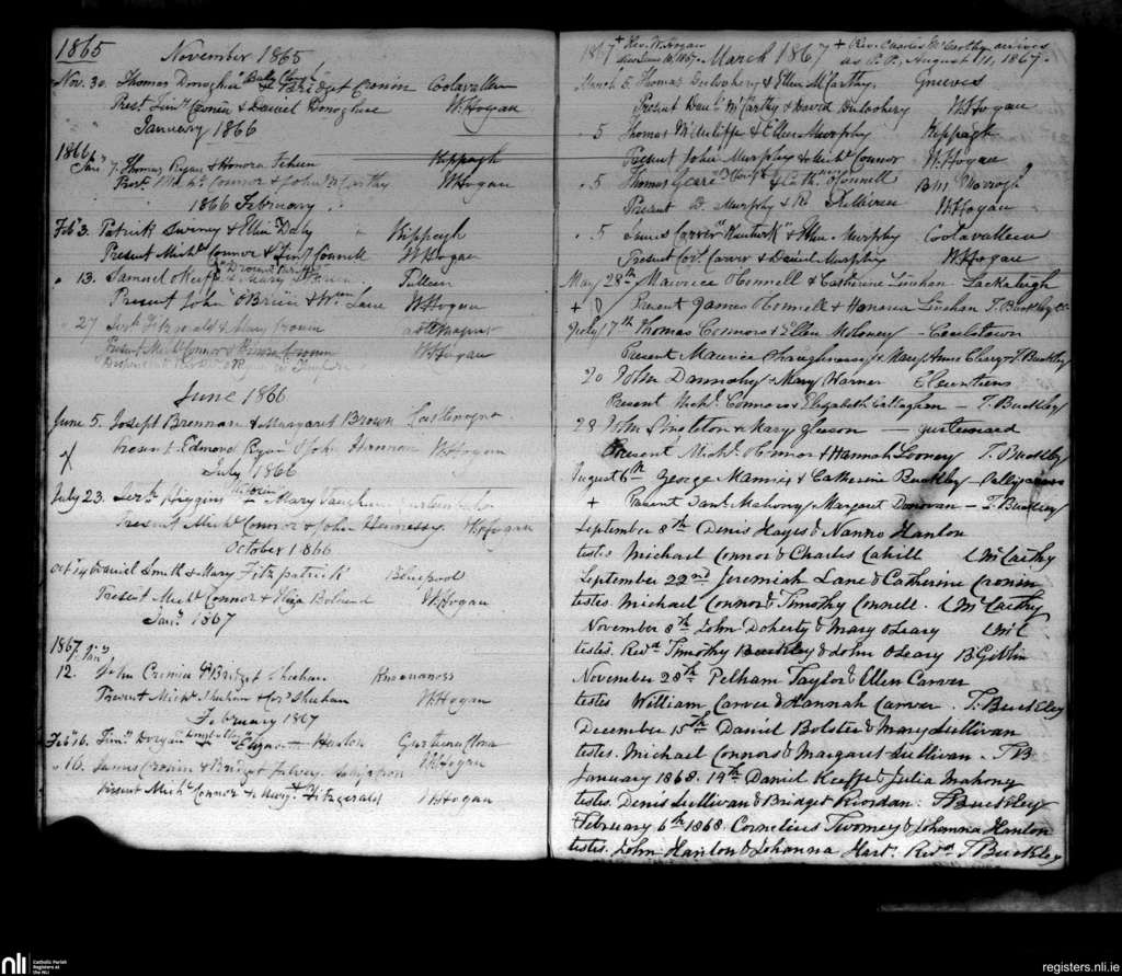 Castlemagner; County of Cork; Diocese of Cloyne. Marriages, Nov. 1865 to Feb. 1868