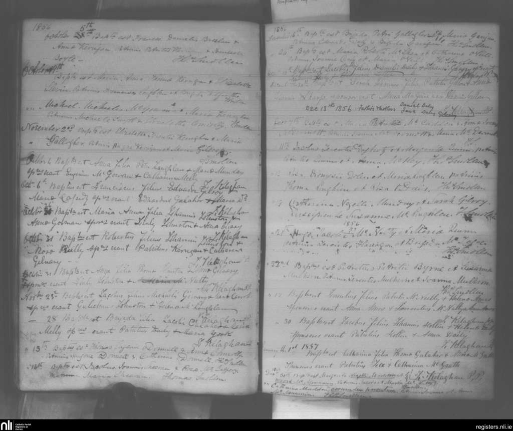 Innismacsaint; County of Donegal, Fermanagh; Diocese of Clogher. Baptisms, Oct. 1856 to Jan. 1857