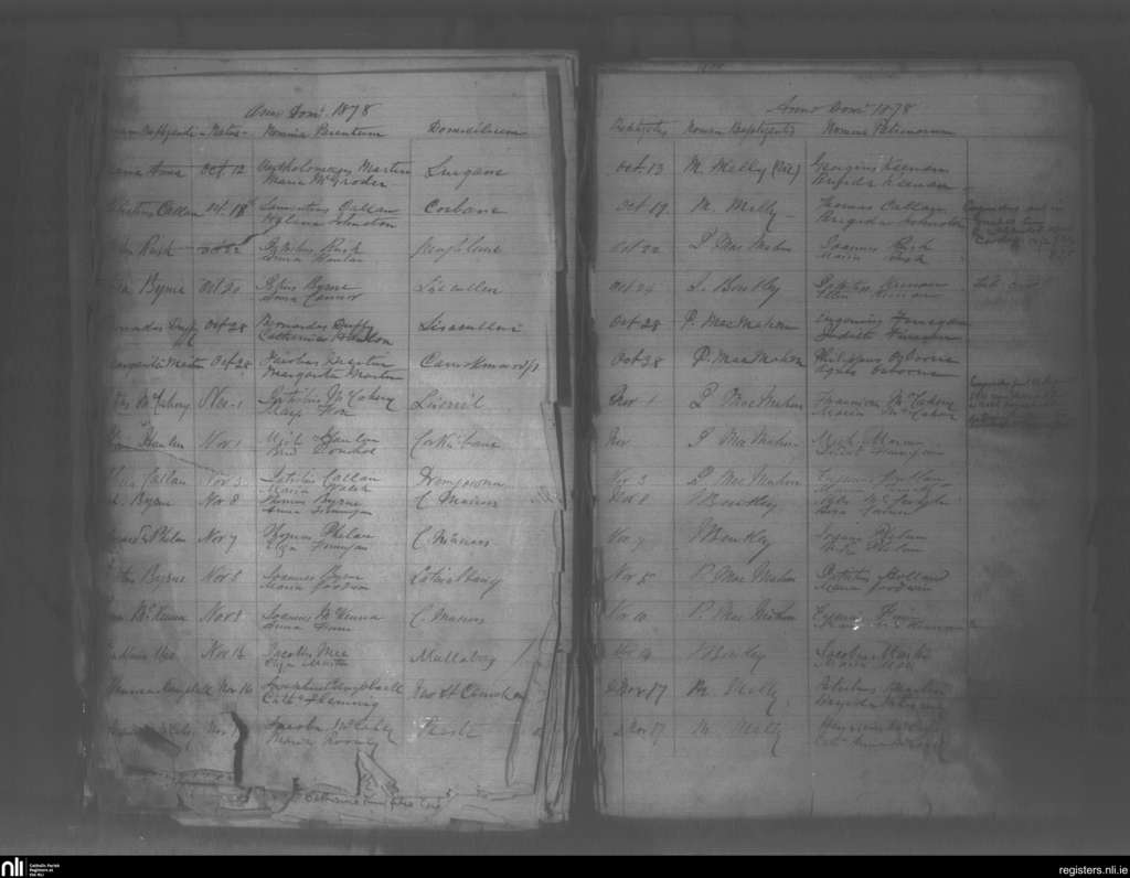 Maghaire Rois; County of Monaghan; Diocese of Clogher. Baptisms, Oct. 1878 to Nov. 1878