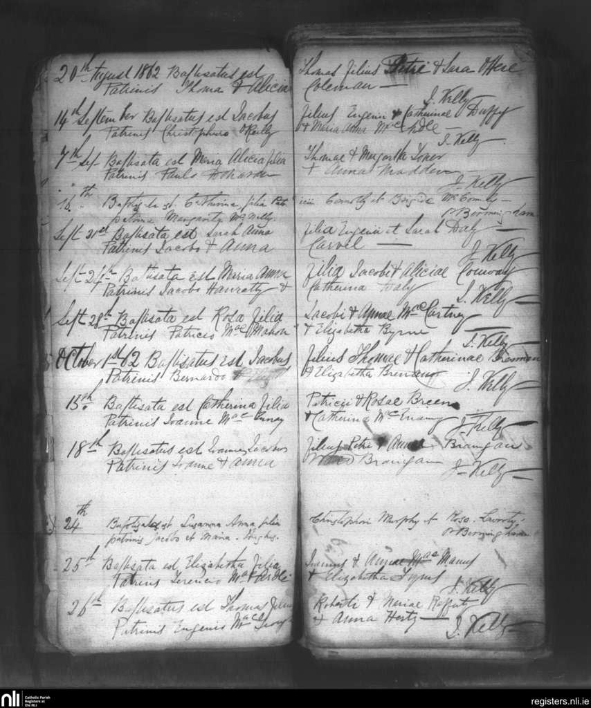 Muckno; County of Monaghan; Diocese of Clogher. Baptisms, Aug. 1862 to Oct. 1862