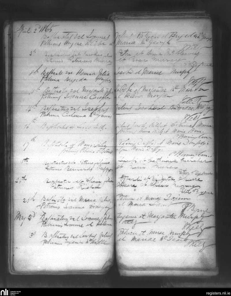 Muckno; County of Monaghan; Diocese of Clogher. Baptisms, Apr. 1865 to May 1865