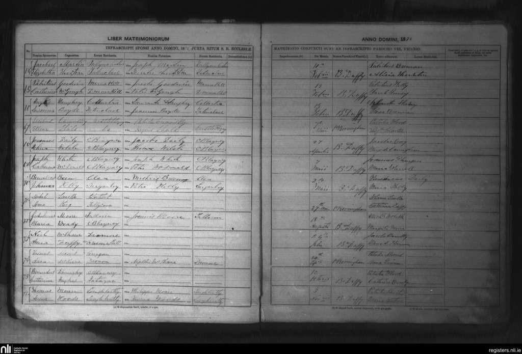Muckno; County of Monaghan; Diocese of Clogher. Marriages, Feb. 1872 to Nov. 1872