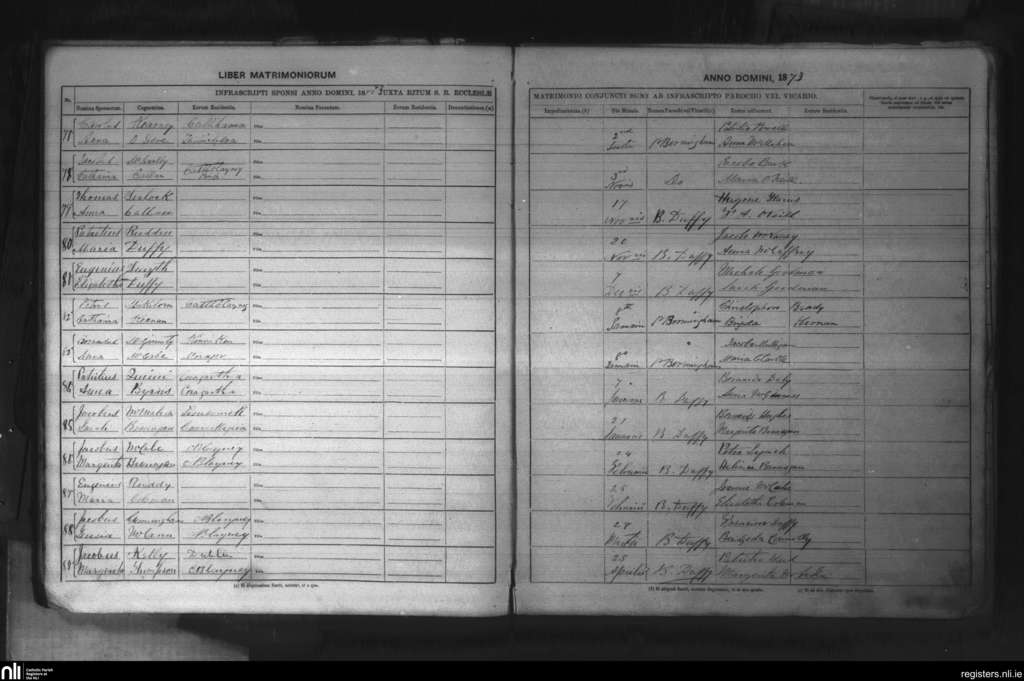 Muckno; County of Monaghan; Diocese of Clogher. Marriages, July 1872 to Apr. 1873