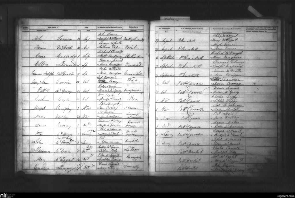 Cleenish; County of Fermanagh; Diocese of Clogher. Baptisms, Jan. 1872 to Dec. 1872
