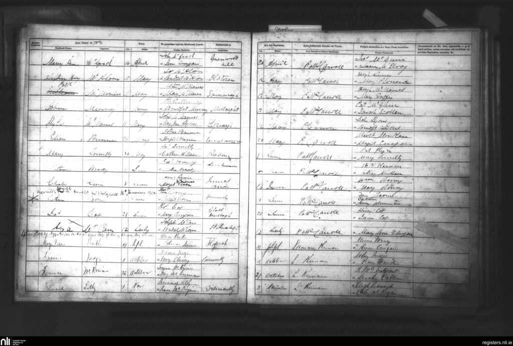 Cleenish; County of Fermanagh; Diocese of Clogher. Baptisms, Apr. 1872 to Nov. 1872