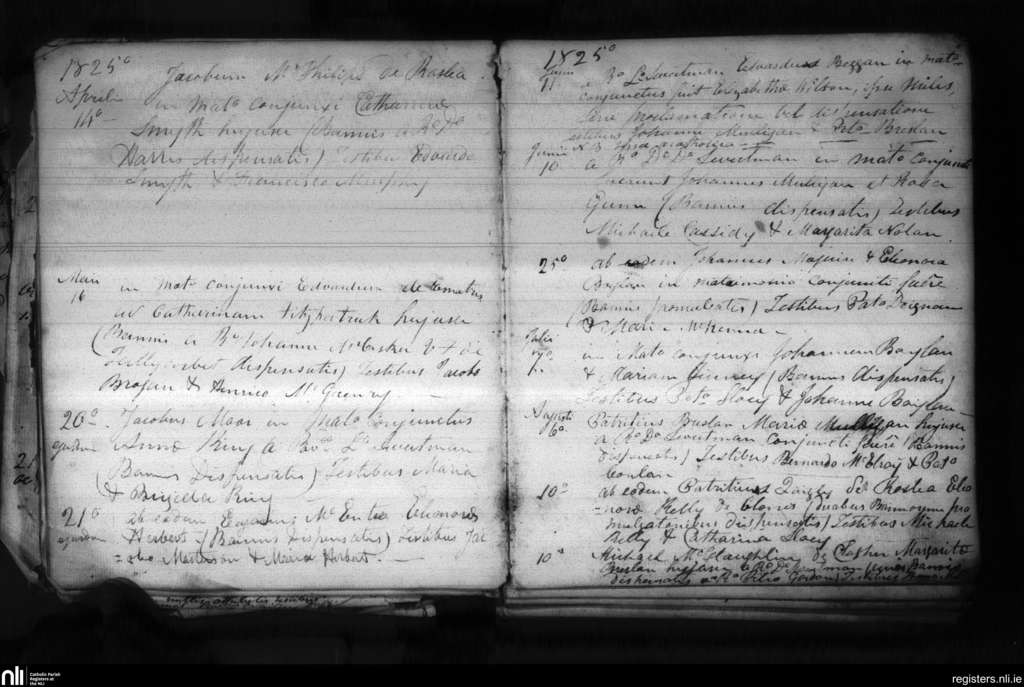 Clones; County of Fermanagh, Monaghan; Diocese of Clogher. Marriages, Apr. 1825 to Aug. 1825