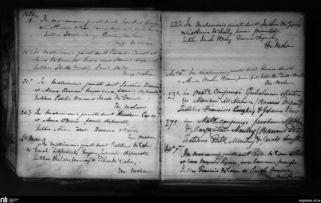 Clones; County of Fermanagh, Monaghan; Diocese of Clogher. Marriages, Apr. 1828 to Sep. 1828