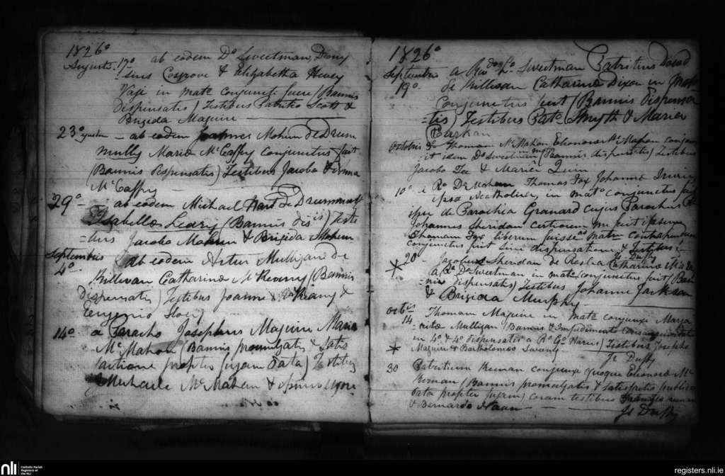 Clones; County of Fermanagh, Monaghan; Diocese of Clogher. Marriages, Aug. 1829 to Oct. 1829