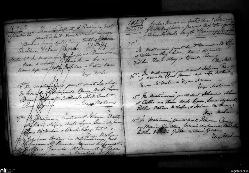 Clones; County of Fermanagh, Monaghan; Diocese of Clogher. Marriages, Sep. 1829 to Oct. 1829