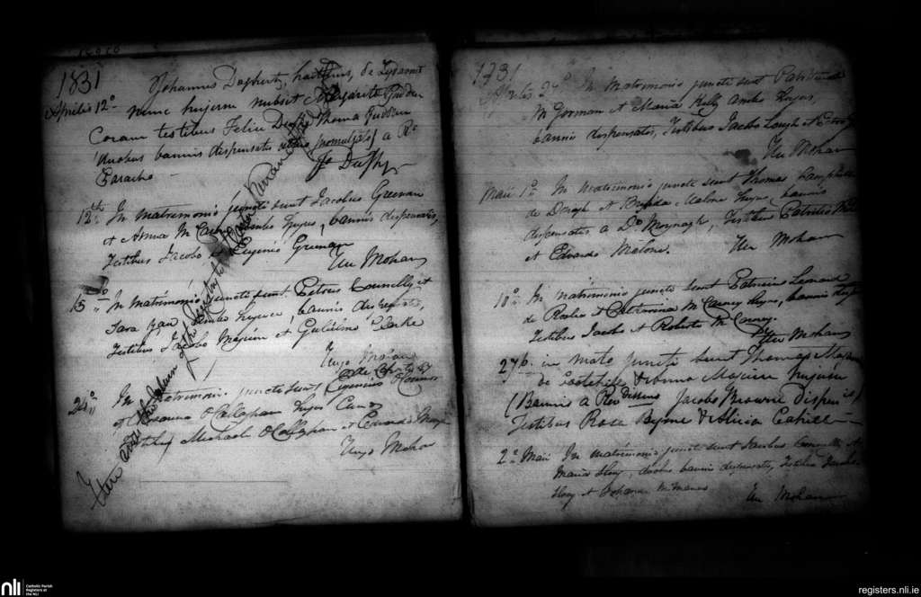 Clones; County of Fermanagh, Monaghan; Diocese of Clogher. Marriages, Apr. 1831 to May 1831