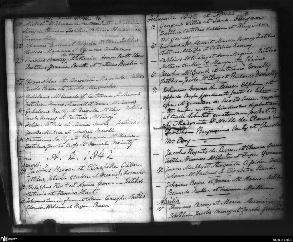Clones; County of Fermanagh, Monaghan; Diocese of Clogher. Marriages, Nov. 1841 to Apr. 1842