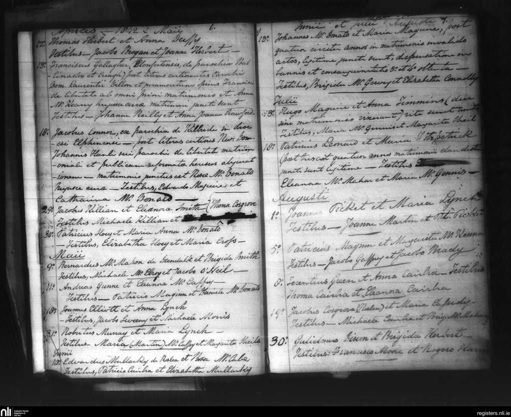 Clones; County of Fermanagh, Monaghan; Diocese of Clogher. Marriages, Apr. 1842 to Aug. 1842