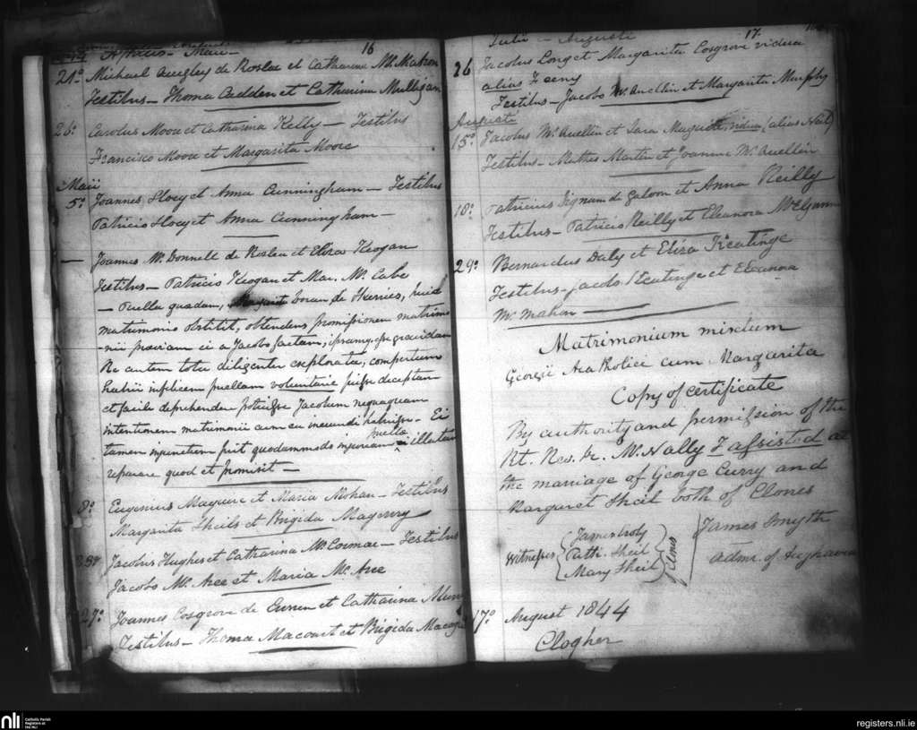 Clones; County of Fermanagh, Monaghan; Diocese of Clogher. Marriages, Apr. 1844 to Aug. 1844
