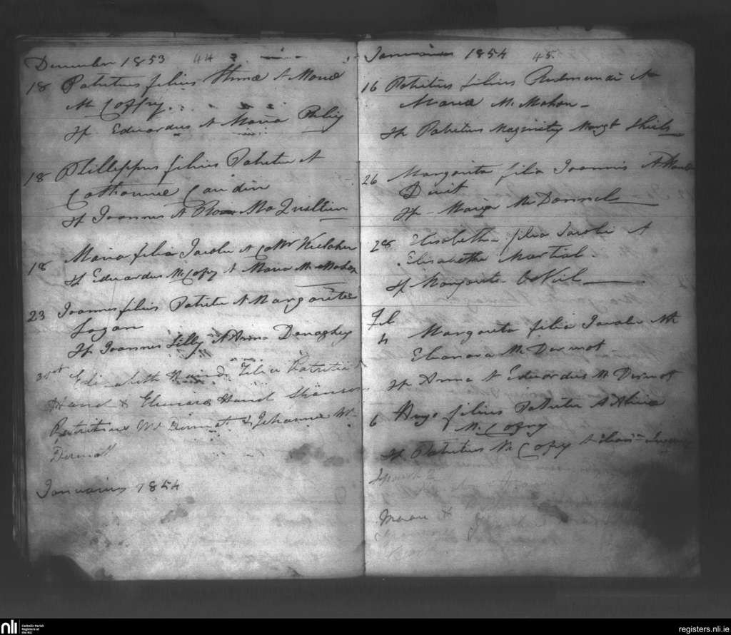 Clones; County of Fermanagh, Monaghan; Diocese of Clogher. Baptisms, Dec. 1853 to Feb. 1854
