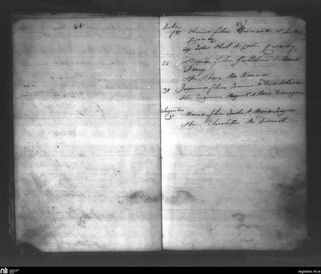 Clones; County of Fermanagh, Monaghan; Diocese of Clogher. Baptisms, July 1854 to Aug. 1854