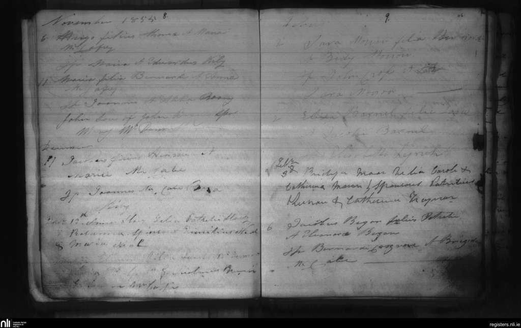 Clones; County of Fermanagh, Monaghan; Diocese of Clogher. Baptisms, Nov. 1855 to Feb. 1856