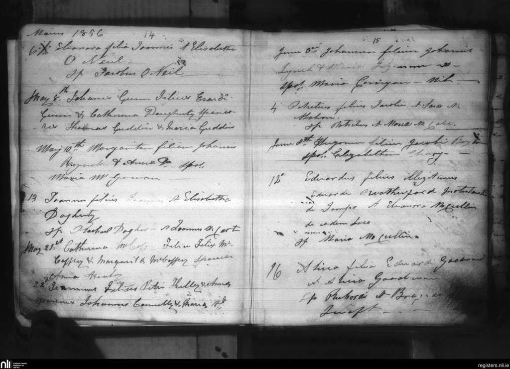 Clones; County of Fermanagh, Monaghan; Diocese of Clogher. Baptisms, May 1856 to June 1856
