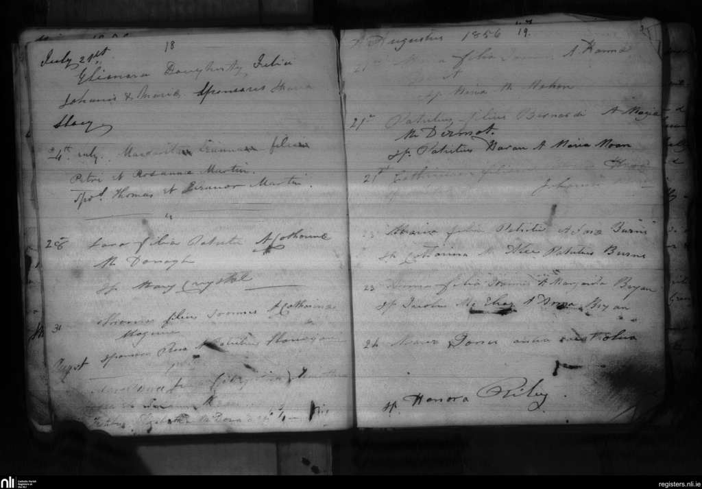 Clones; County of Fermanagh, Monaghan; Diocese of Clogher. Baptisms, July 1856 to Aug. 1856