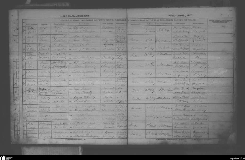 Clontibret; County of Monaghan; Diocese of Clogher. Marriages, Jan. 1862 to Mar. 1862