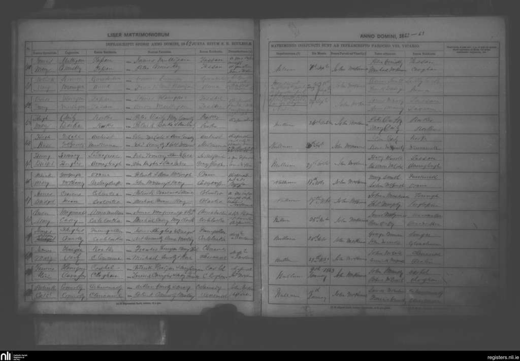 Clontibret; County of Monaghan; Diocese of Clogher. Marriages, Sep. 1862 to Jan. 1863