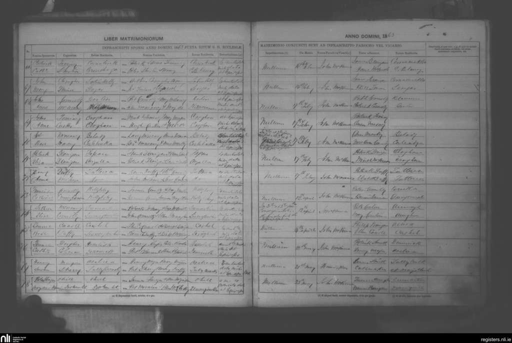 Clontibret; County of Monaghan; Diocese of Clogher. Marriages, Feb. 1863 to May 1863