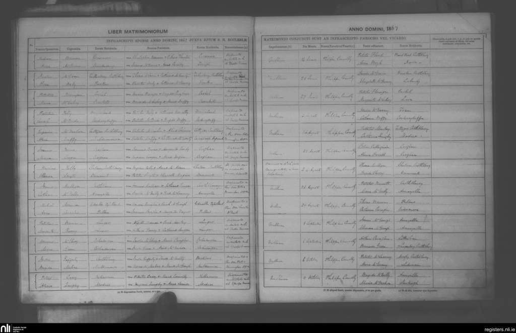 Clontibret; County of Monaghan; Diocese of Clogher. Marriages, June 1867 to Oct. 1867