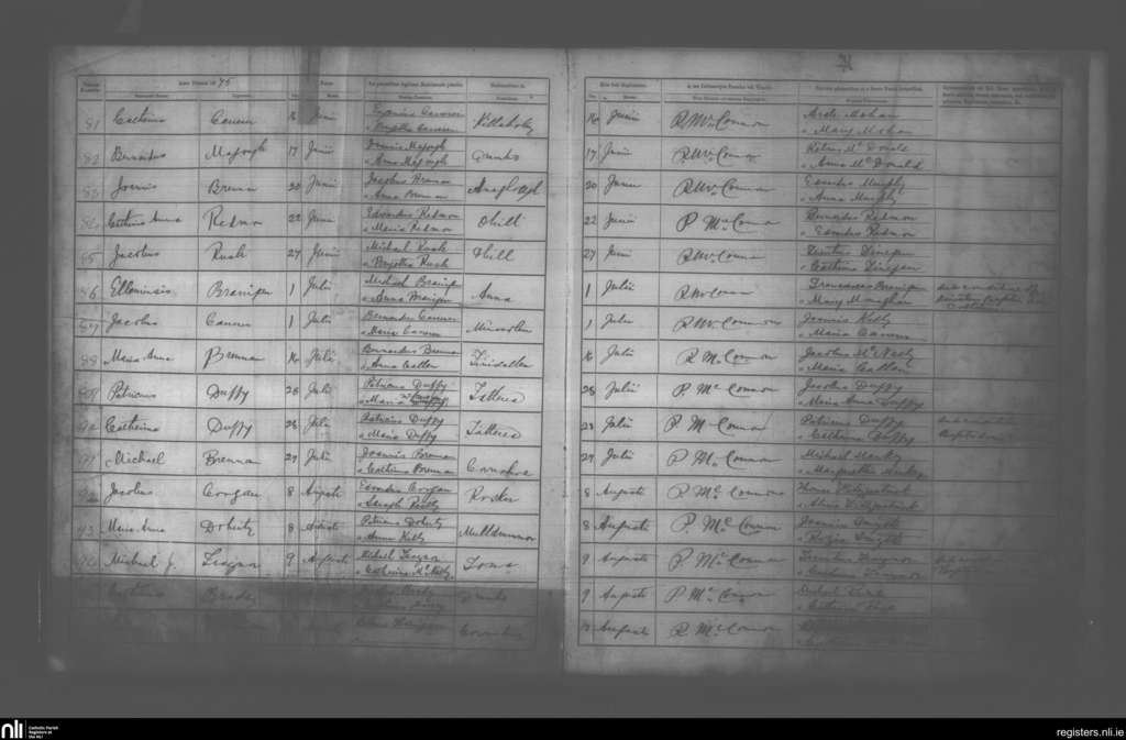 Clontibret; County of Monaghan; Diocese of Clogher. Baptisms, June 1875 to Aug. 1875