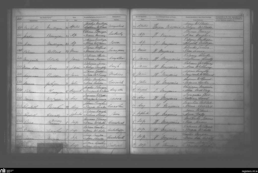 Clontibret; County of Monaghan; Diocese of Clogher. Baptisms, Apr. 1875 to Sep. 1875