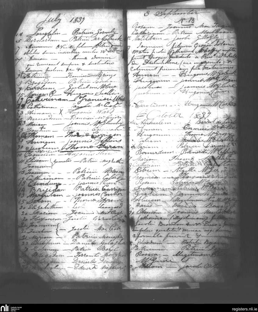 Magheraculmany; County of Fermanagh; Diocese of Clogher. Baptisms, July 1837 to Oct. 1837