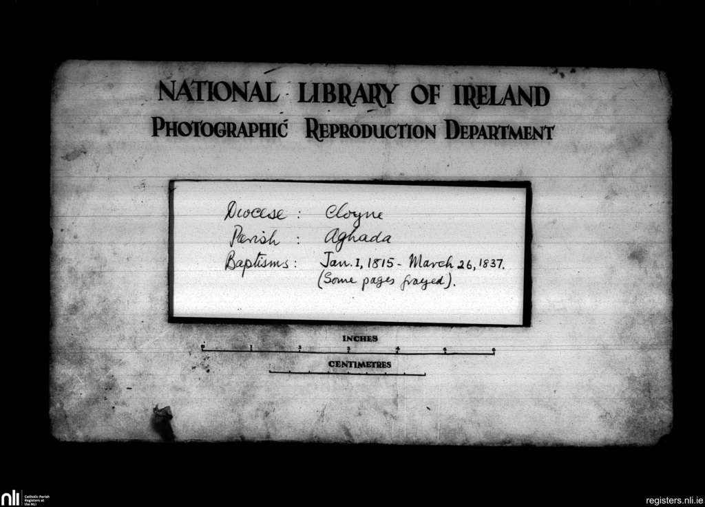 Aghada; County of Cork; Diocese of Cloyne. Baptisms