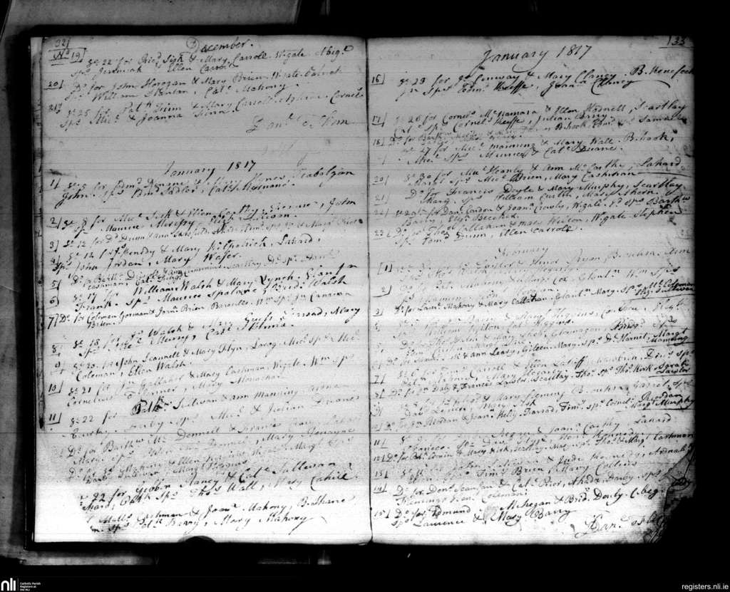 Aghada; County of Cork; Diocese of Cloyne. Baptisms, Dec. 1816 to Feb. 1817