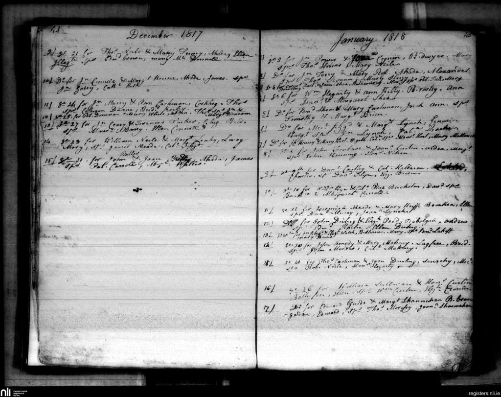Aghada; County of Cork; Diocese of Cloyne. Baptisms, Dec. 1817 to Jan. 1818