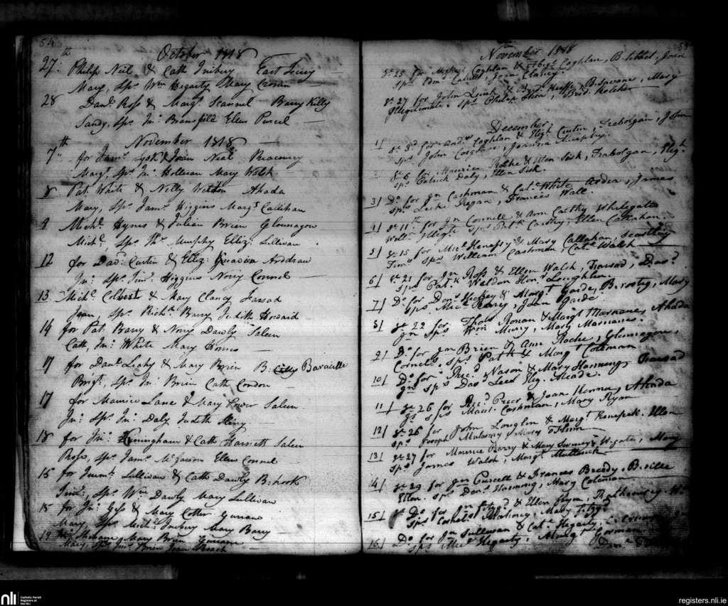 Aghada; County of Cork; Diocese of Cloyne. Baptisms, Oct. 1818 to Dec. 1818