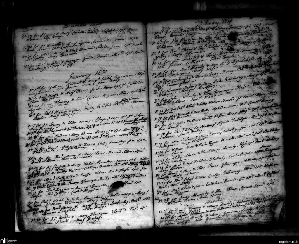 Aghada; County of Cork; Diocese of Cloyne. Baptisms, Dec. 1820 to Mar. 1821