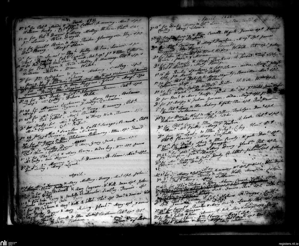 Aghada; County of Cork; Diocese of Cloyne. Baptisms, Mar. 1822 to May 1822