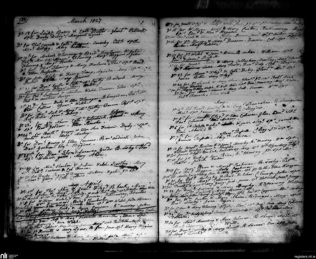 Aghada; County of Cork; Diocese of Cloyne. Baptisms, Mar. 1827 to May 1827