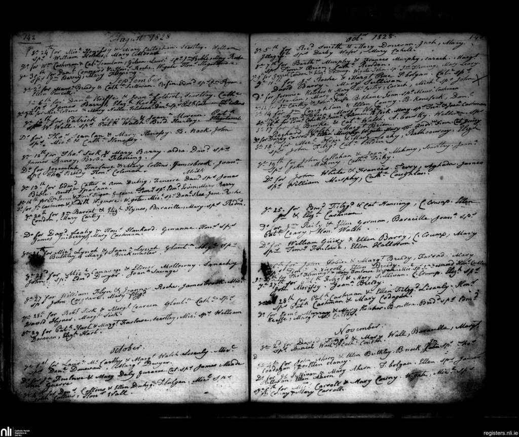 Aghada; County of Cork; Diocese of Cloyne. Baptisms, Aug. 1828 to Nov. 1828