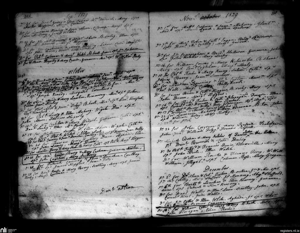 Aghada; County of Cork; Diocese of Cloyne. Baptisms, Sep. 1829 to Dec. 1829