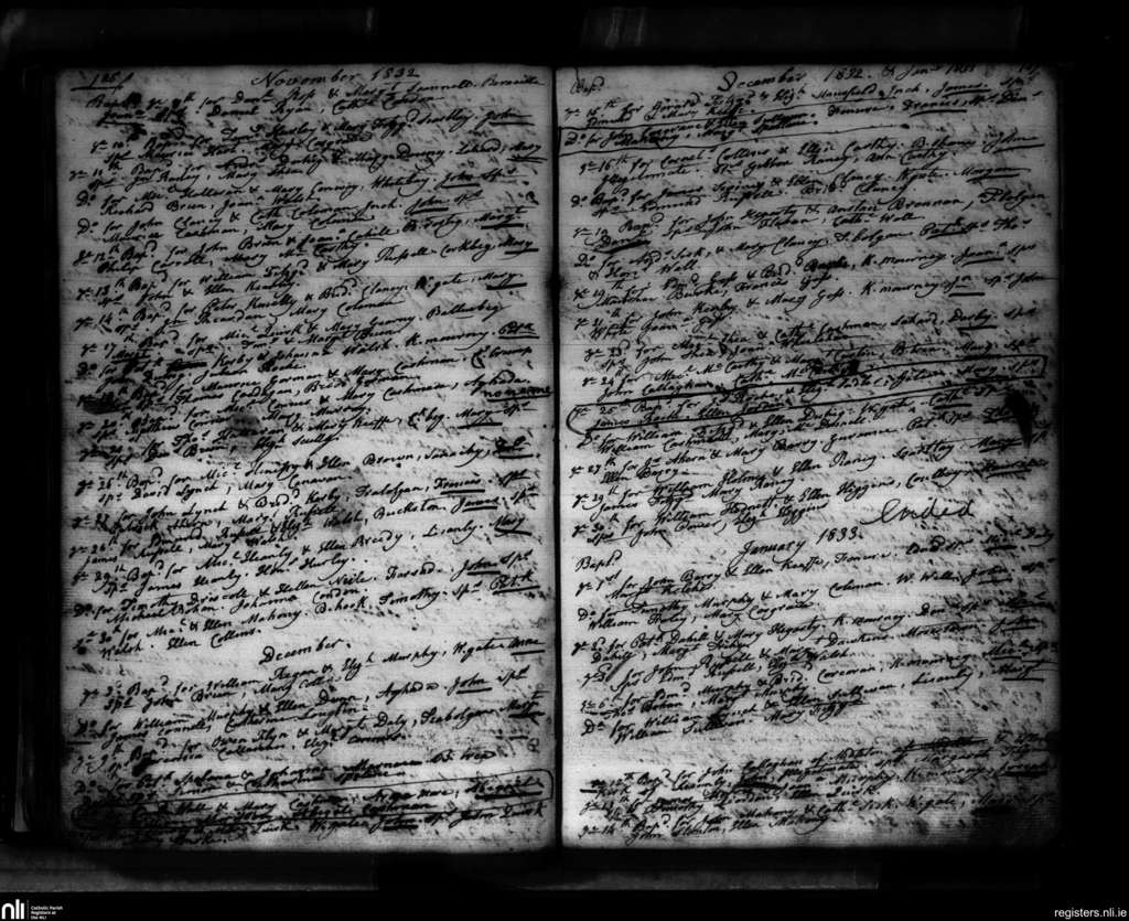 Aghada; County of Cork; Diocese of Cloyne. Baptisms, Nov. 1832 to Jan. 1833