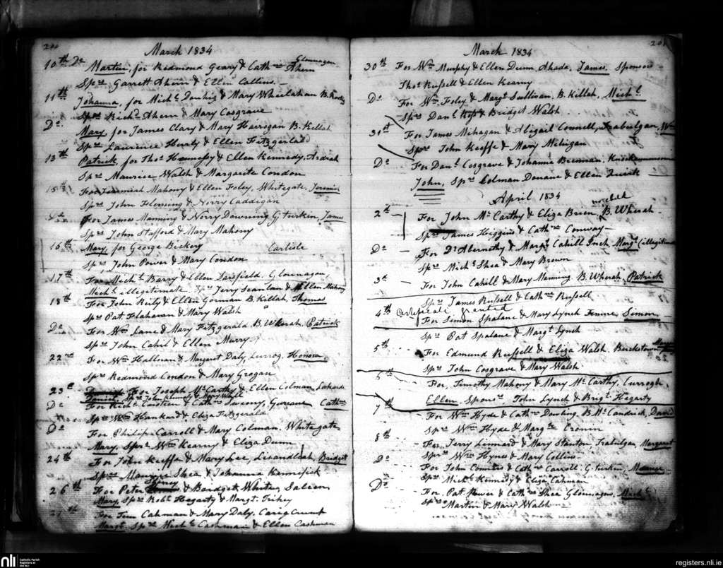 Aghada; County of Cork; Diocese of Cloyne. Baptisms, Mar. 1834 to Apr. 1834