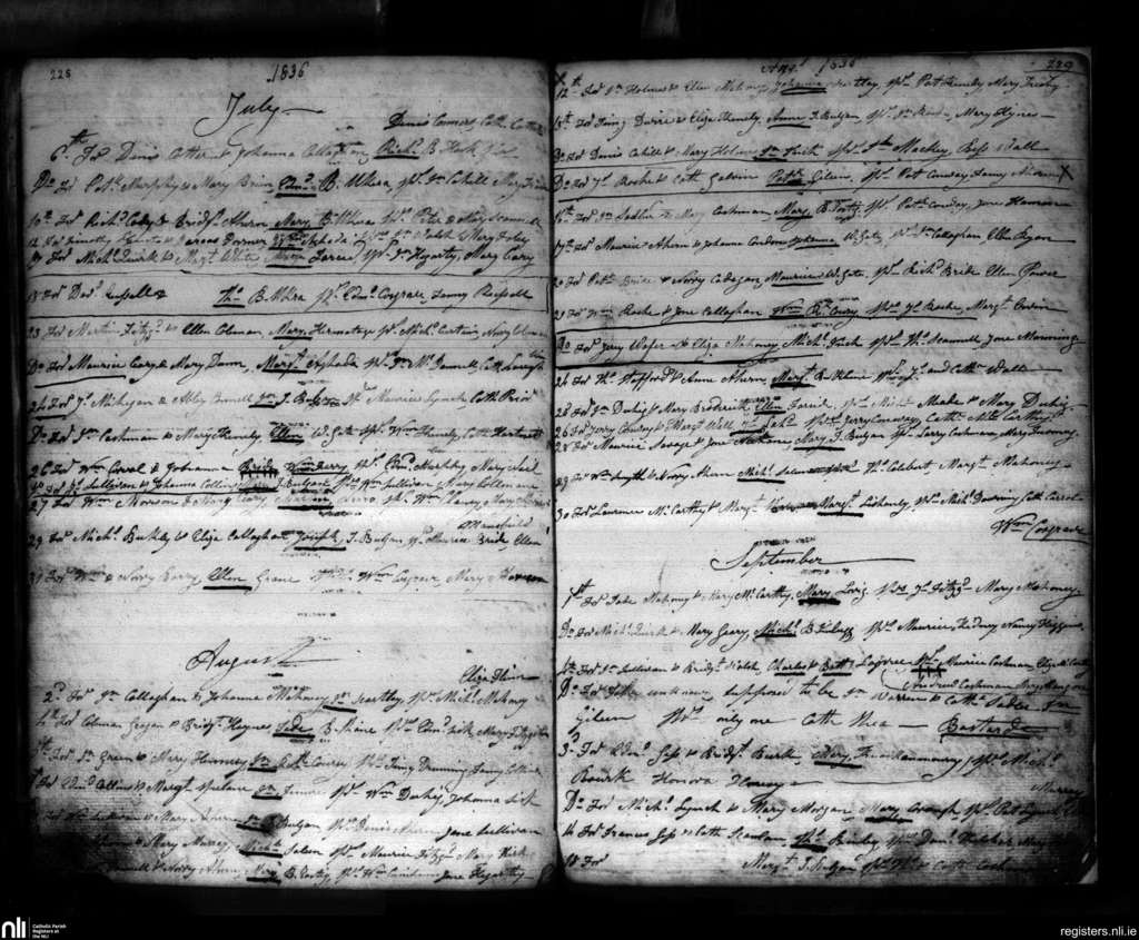 Aghada; County of Cork; Diocese of Cloyne. Baptisms, July 1836 to Sep. 1836