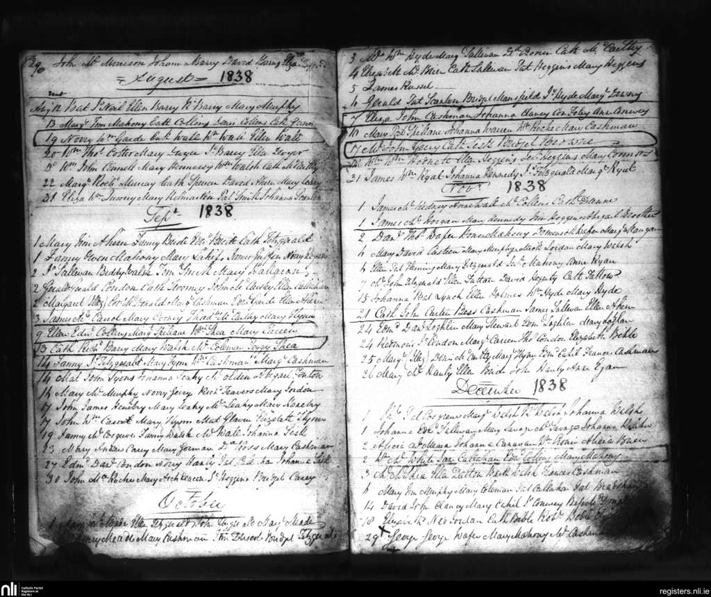 Aghada; County of Cork; Diocese of Cloyne. Baptisms, July 1838 to Dec. 1838