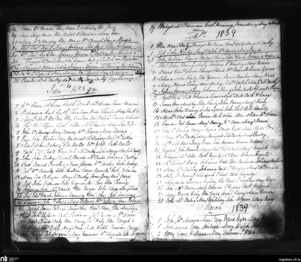 Aghada; County of Cork; Diocese of Cloyne. Baptisms, Dec. 1838 to Mar. 1839